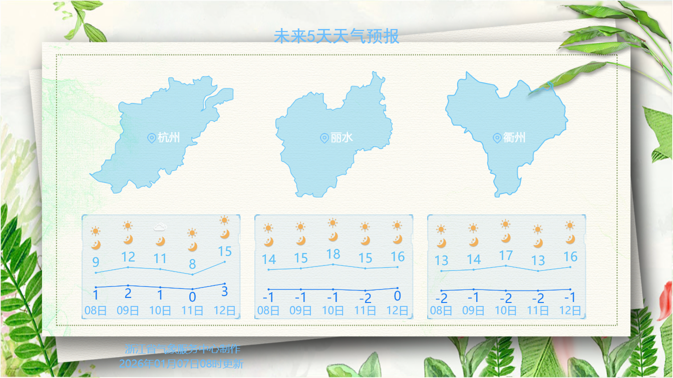 于杭州相较,力度会更“妄诞”浙南地域的回暖。月10日估计1,温根本能冲破15℃浙南部门地域最高气,达惊人的18℃此中丽水估计可。的温和周末阳光和煦,前期望一波民多可能提。意的是值得注,弱寒气氛填充影响1月10日后期有,不鲜明降温,将有8级大风但沿海海面。